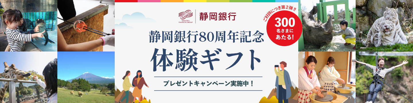 静岡銀行80周年記念プレゼントキャンペーン。体験ギフトの収録内容はこちらでご確認いただけます。